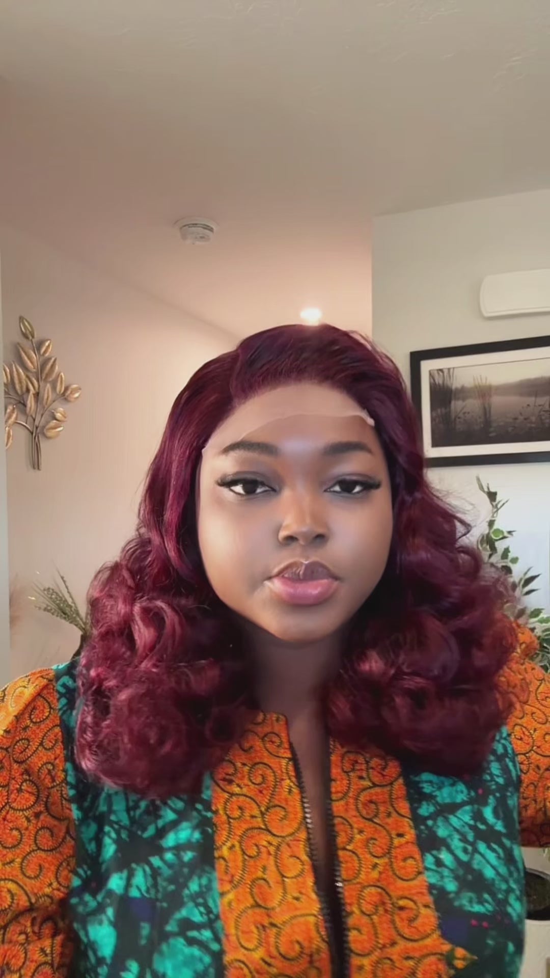 Glueless 16” Burgundy bouncy curls. Wear and go